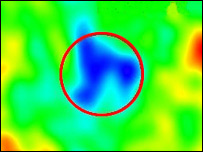 Rudnick y sus colegas Shea Brown y Liliya Williams examinaban una zona fría utilizando la sonda de la NASA Wilkinson Microwave Anisotropy Probe (WMAP), que permite medir la radiación de fondo de microondas, un débil zumbido de radio remanente del Big Bang o Gran Explosión que dio origen al universo. En esa región encontraron el gigantesco agujero, que es todavía más frío que la zona analizada.