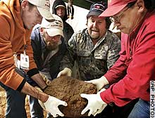 The dig in Kansas Monday was likely the most documented excavation yet of a meteorite find, with researchers painstakingly using brushes and hand tools in order to preserve evidence of the impact trail and to date the event of the meteorite strike. Soil samples were also bagged and tagged, and organic material preserved for dating purposes.
